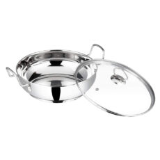 Vinod Coookware Platinum Triply Stainless Steel Kadai with Stainless Steel Lid 3.2 litres (26 cm Diameter), Induction and Gas Stove Friendly,Silver