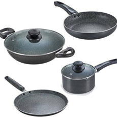 Prestige Omega Granite Aluminium Kitchen Set, 4-Pieces, Black