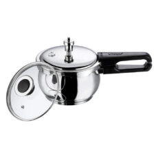 Vinod Cookware Induction Friendly Sandwich Bottom Pressure Cooker with Lid, 3-Pieces, 3 Liters, 3-Pieces, Silver