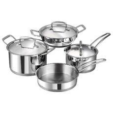 Vinod Cookware Classic Deluxe Stainless Steel Induction Friendly 4 Pcs. Set (16cm Saucepan with Lid, 18cm Sauce Pot with Lid, 20cm Kadai with Lid, 20cm Fry Pan Without Lid)