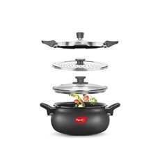 Pigeon By Stovekraft All in One Super Cooker Aluminium with Outer Lid Induction and Gas Stove Compatible 5 Litre Capacity for Healthy Cooking (Black)
