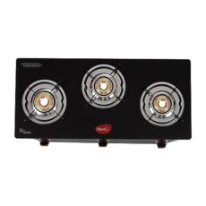 Pigeon by Stovekraft Aster 3 Burner Gas Stove with High Powered Brass Burner Gas Cooktop, Cooktop with Glass Top and Powder Coated Body, Black, Manual Ignition, Standard (14267)