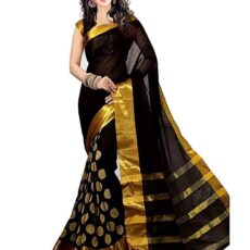 Birami Ethnics Women’s Poly Cotton Saree with Blouse Piece, Free Size (Bf134_Black)