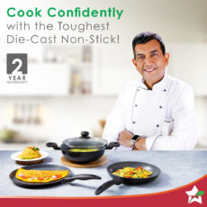 Duralite Die-Cast Non-Stick Pans 4 pcs Set | 24 cm Kadhai with Lid, 24 Cm Fry Pan, 28 cm Dosa Tawa | 1.2 L | Grey | 2 Years Warranty