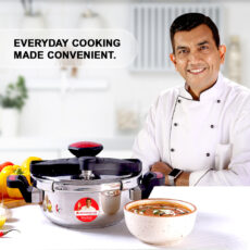 Easy Lock Stainless Steel 5L Outer Lid Pressure Cooker | Induction Compatible | Tri-Ply Bottom | 5 Year Warranty | Free Glass Lid | Silver
