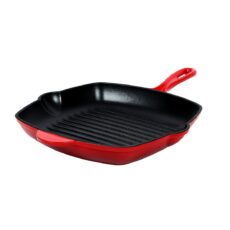 Ferro Cast-iron 26 cm Grill Pan, Induction Friendly, Enamel Coating, 2.3 L, 5 Years Warranty, Red