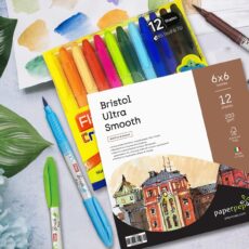 Flair Creative Brush Pen 12 Multicolour Shades,Fine Tip, With 6×6 Bristol Ultra Smooth Paper Combo Pack Bianco White