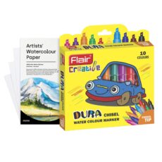 Flair Creative Dura Bold Water Color Pen With 6×6 Watercolor Paper Combo Pack Bianco,White
