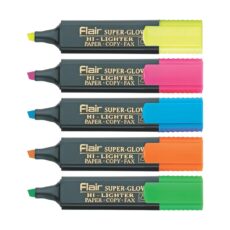 FLAIR Super Glow Color Pens Pouch Pack | Non-Toxic Ink & Safe For Childrens | Ergonomic Grip With Pocket Clip For Comfortable Handling | Pack Of 5