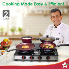 Galaxy 4 Burner Cooktop | 2 Medium, 2 Small Wide Spaced Burners | Highly Efficient Tri-pin Brass Burners | Precise Flame Control | BIS Approved 6mm Toughened Glass Top | 2 Year Warranty