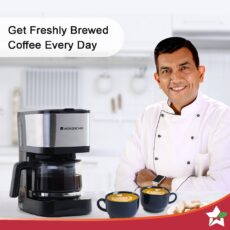 Regalia Pronto Coffee Maker 600W | Coffee Brewer Machine for Home & Office | 750ml Borosilicate Glass Carafe | 3-in-1 Filter Coffee, Espresso, Cappuccino | Auto Shut Off | 6 Cups Coffee | Perfect Gifting Option | Black & Silver| 2 Year Warranty