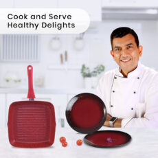 Royal Velvet Grill Pan 24cm Red + Teramo Qtr. Plates Set of 2, Gift Combo, For Family and Friends, Gift for Diwali and Festivals, House Warming