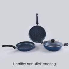 Sigma Non-stick Cookware Set, 4Pc (Kadhai with Lid, Dosa Tawa, Fry Pan), Induction Bottom, Cool Touch Bakelite Handles, Virgin Aluminium, PFOA Free, 2 Years Warranty, Midnight Blue