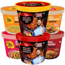 Yu Foodlabs-Cup Noodles Combo Pack Of 6-Chilli Manchurian, Zingy Cheese, Chilli Chicken, Butter Chicken, Red Hot Veg, Red Hot Chicken-No Preservatives-100% Natural-Ready To Eat Instant Noodles-455gram