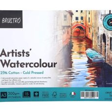 BRUSTRO Artist 25% Cotton Watercolour Pad, Wiro Cold Pressed, 300 GSM A3-15 Sheets