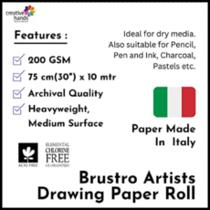 Brustro Artist Drawing Paper Roll 200 Gsm. Size 75 cm(30″) x10 mtr