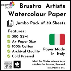 Brustro Artists’ WC 100% Cotton CP 300gsm Jumbo – A4 (30 Sheets)