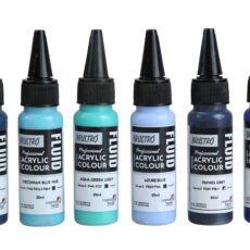 Brustro Professional Artists Fluid Acrylic 20 ml Beyond The Blues Set of 6 (Turquoise, Ultramarine Blue, Zirconian Blue Hue, Paynes Grey, Aqua Green Light, Azure Blue) with Pouring Medium 200 ml