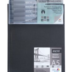 BRUSTRO Professional Pigment Based Fineliner – Set of 6 (Black) & Brustro Artists Stitched Bound Sketch Book, A5 Size, 156 Pages, 90 GSM