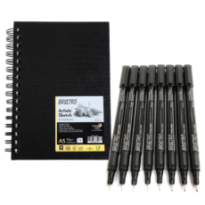 Brustro Professional Pigment Based Fineliner – Set of 10 with Artists Sketch Book, A5,160 GSM