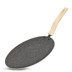 BERGNER Earth Black Non-Stick 28 cm Dosa Tawa, Wooden Finish Soft Touch Handle, 3mm Thickness, Consumes Less Oil, Even Heat Distribution, White Marble Splatter, Induction Bottom and Gas Ready