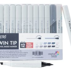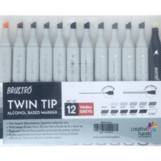 BRUSTRO Twin Tip Alcohol Based Marker Set of 12 Cool & Warm Grey Shades in Crossline PP See Through Box