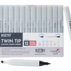 BRUSTRO Twin Tip Alcohol Based Marker Set of 12 – Pastel Tones in Crossline PP See Through Box