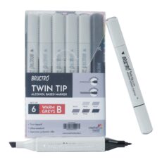 BRUSTRO Twin Tip Alcohol Based Marker Set of 6 – Warm Greys Set B in Crossline PP See Through Box