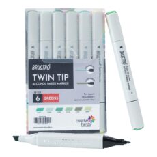 BRUSTRO Twin Tip Alcohol Based Marker Set of 6 (Greens) in Crossline PP See Through Box
