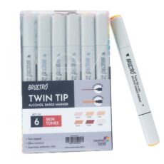BRUSTRO Twin Tip Alcohol Based Marker Set of 6 (Skin) in Crossline PP See Through Box