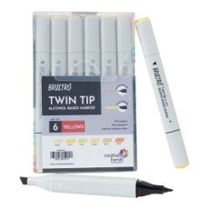 BRUSTRO Twin Tip Alcohol Based Marker Set of 6 (Yellows) in Crossline PP See Through Box