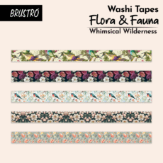 BRUSTRO Washi Masking Tapes |Flora and Fauna Shade|15 mm x 5 mtrs (Set of 5)| Low Tack Adhesive, Ideal For Scrapbooking, Watercolor, Planners, Card/Gift Wrapping, DIY Decor and Craft Supplies