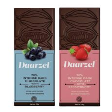 AMBRIONA Daarzel Vegan Dark Chocolate|70% Dark Gluten Free Pack Of 2 Blueberry And Strawberry|2 X 50Gm|Daarzel Bars