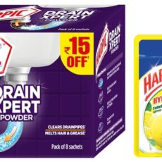 Harpic Disinfectant Bathroom Cleaner Liquid, Lemon – 1L + Harpic Drain Xpert Drain Cleaning Powder (50g x 8)