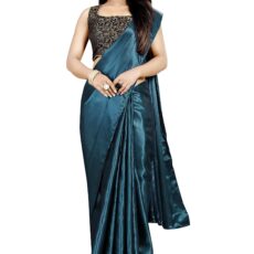 Market Magic World Women’s Satin Saree With Blouse Piece (Jst-Silk_Peacock_Free Size_Dark Green)