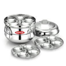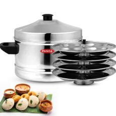 PANCA Idli Maker Stainless Steel Idli Cooker, Idli Steamer, Idly Pot, Dhokla Maker and Mini Idli Plate (Silver, 18 Idli, 18 Mini Idli, 5 Plate Idli Kadai)