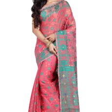 dB DESH BIDESH Women`s Bengal Tant Jamdani Printed Handloom Cotton Saree Without Blouse Piece(Pink)
