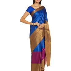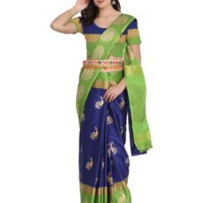 Gosriki Women’s Cotton Saree With Blouse Piece (ORI-BLUE-GREEN_Blue & Green_Free Size_Multicolor)