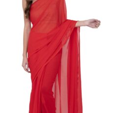 LIME Plain Georgette Red Saree With Blouse Piece For Women (Free Size)
