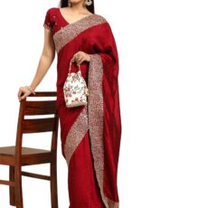 Kasee Women Embroidered Saree with Blouse Piece(Cherry 1)