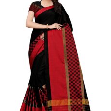 GoSriKi Women’s Black Color Cotton Silk Blend Zari Work Saree Border Tassels With Blouse Piece (BOX-ARPAN-BLACK_Free Size)