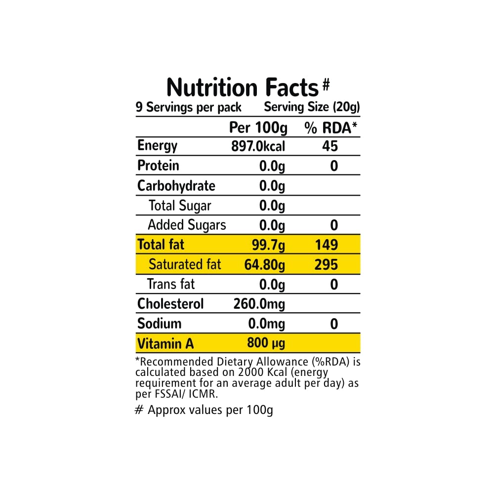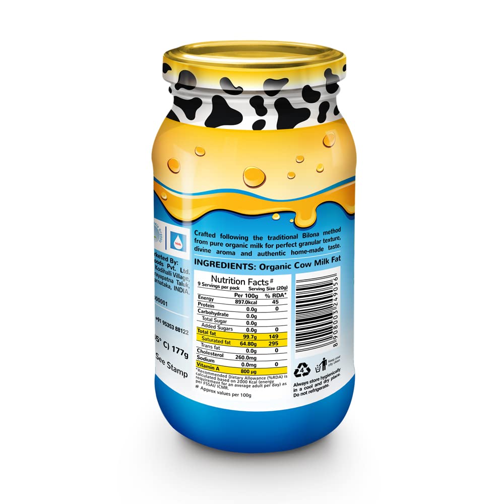 - Traditionally slow-churned: The Bilona method of preparation is a slow, elaborate process that pays homage to the way ghee was made at home for generations.