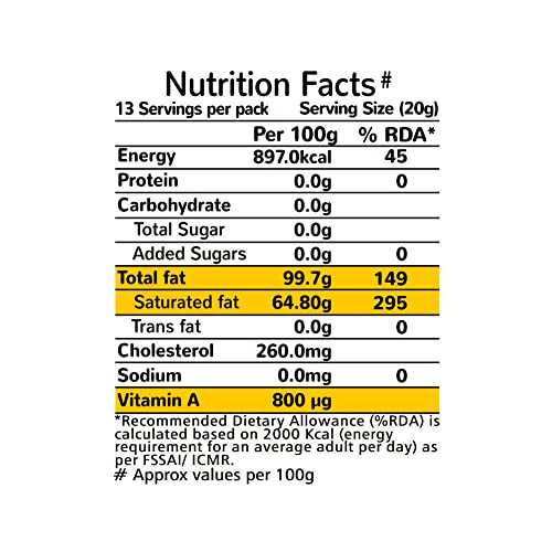 - Traditionally slow-churned: Prepared following the intricacies of the traditional Bilona method, the ghee undergoes a slow, elaborate process, synonymous with the way ghee was made at home for generations.