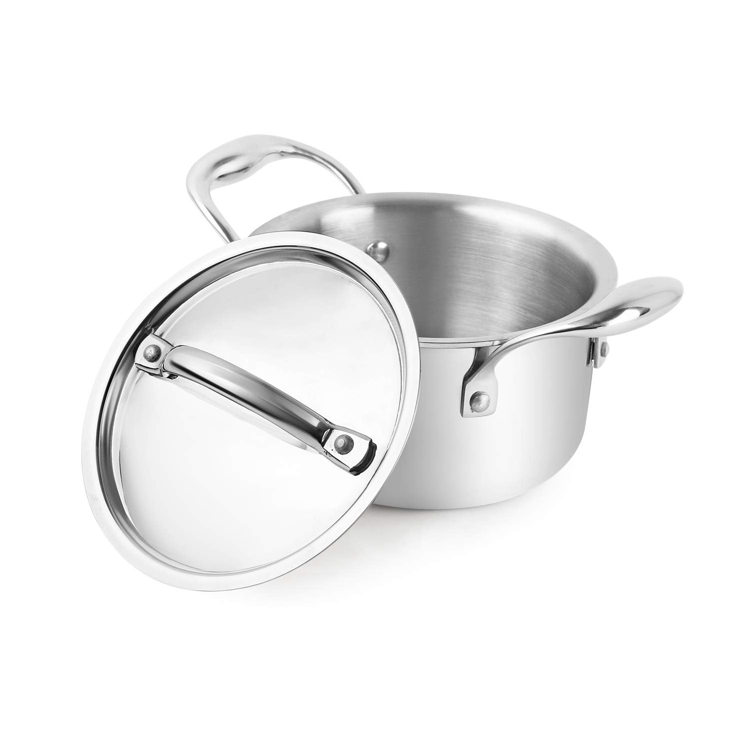 - Three Layers, Three Benefits: Core of quick and even heating Aluminium sandwiched between 2 layers of 100% safe non-toxic food grade Stainless Steel