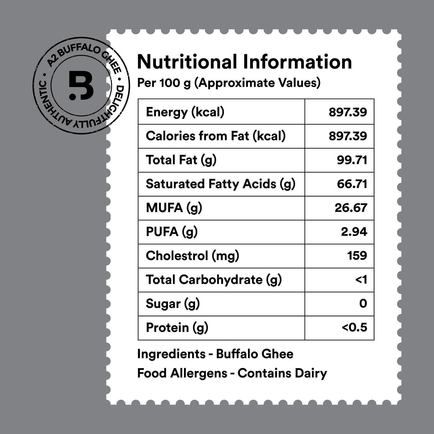 - 100% NATURAL & PURE: Barosi Buffalo Ghee is made using the fresh & pure milk of the grass-fed desi Buffalos reared on our farm. Our Ghee is made in small batches to assure freshness & quality. The Buffalos are neither injected with hormones nor artificially inseminated to enhance milk production.