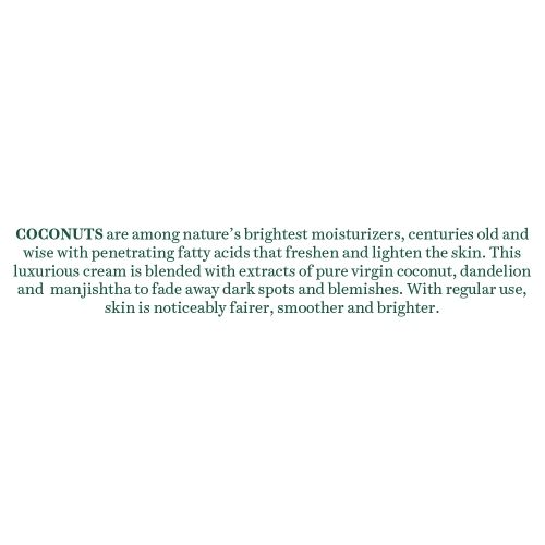 This luxurious cream is blended with extracts of pure virgin coconut, dandelion and manjishtha to fade away dark spots and blemishes. With regular use, skin is noticeably fairer, smoother and brighter.