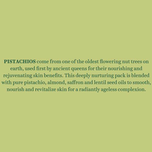 This deeply nurturing pack is blended with pure pistachio, almond, saffron and lentil seed oils to smooth, nourish and revitalize skin for a radiantly ageless complexion.