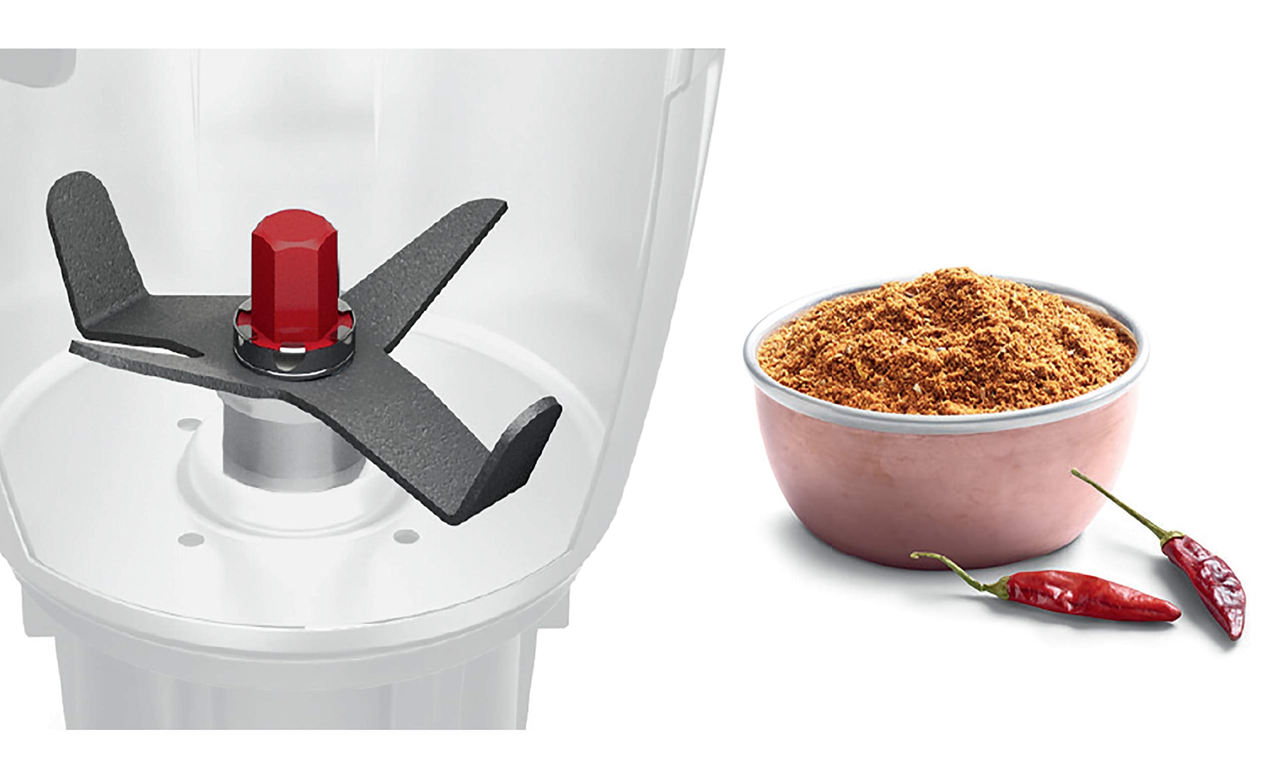- Uniquely designed blunt PoundingBlade with thick edges which replicates pounding effect on dry ingredients, thus giving authentic texture and taste