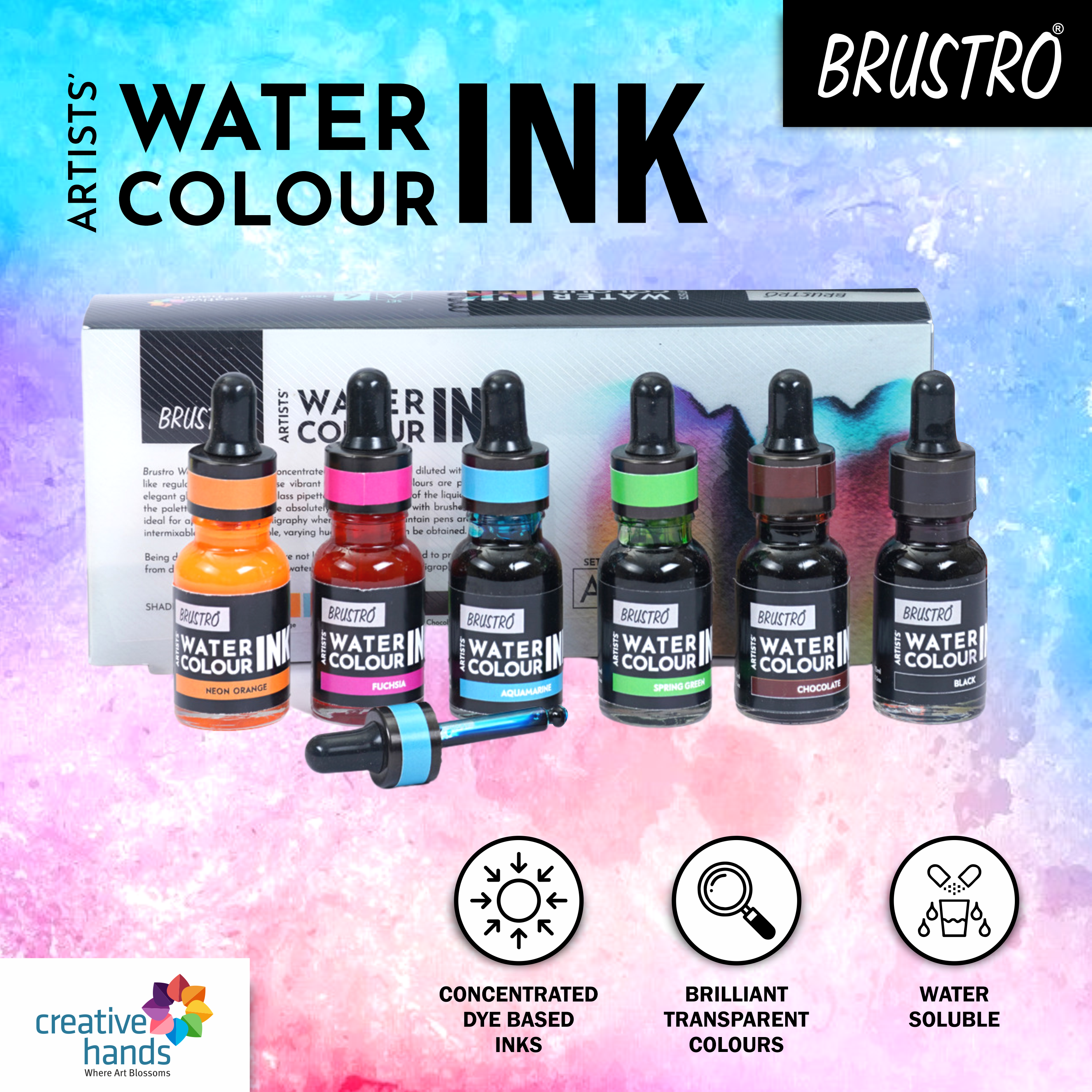 Brustro Watercolour Ink Set A of 6 x 15ml (6 Shades with Free Watercolour A5 Wiro Journal Worth Rs 399