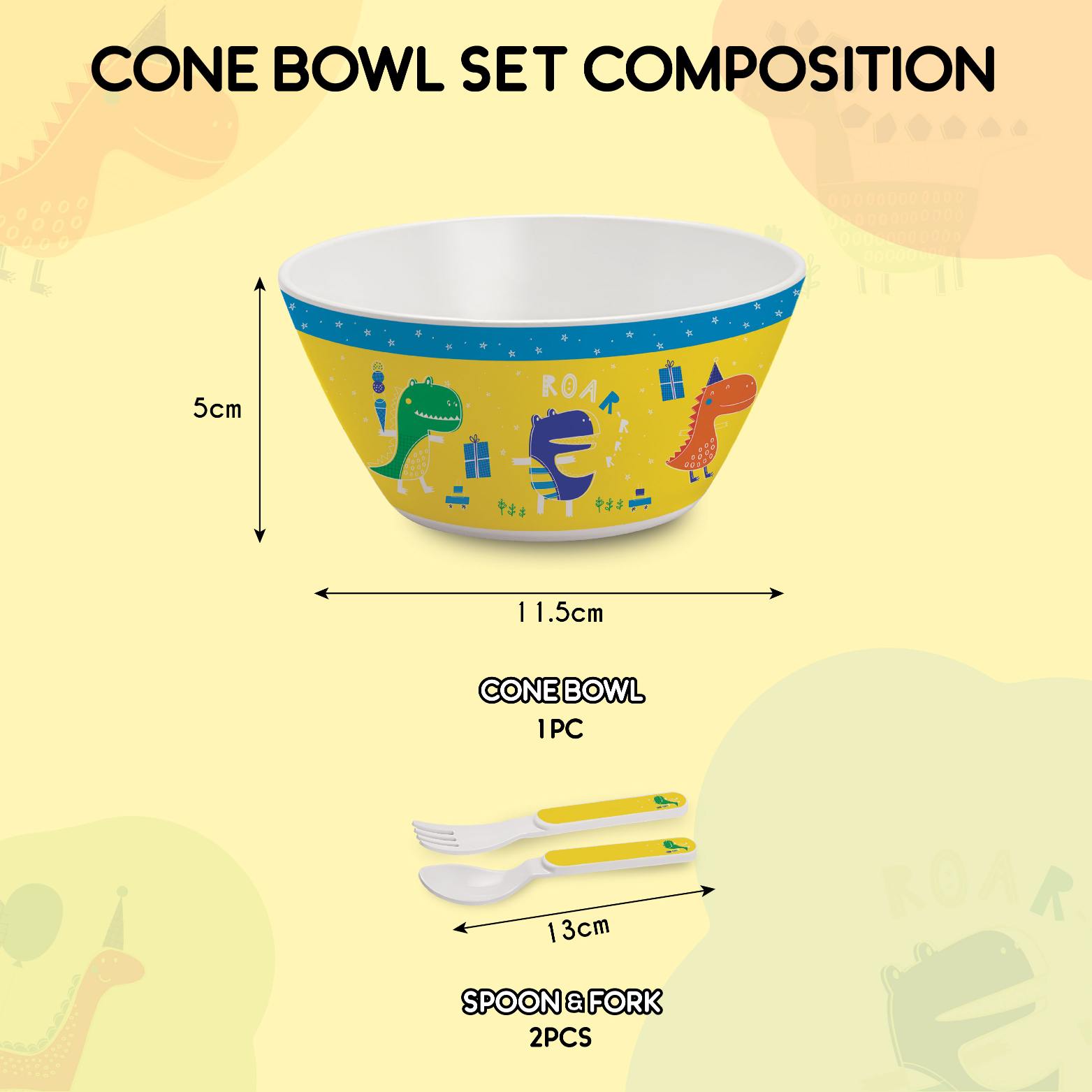 Introducing the Kidzbee’s Cone Melamine collection Set of 3 seamlessly blends safety and style for your little ones. Not only visually appealing, but they also ensure shatterproof reliability and dishwasher safety. The designs are printed with food-grade ink, prioritizing your child’s safety during mealtime. Kidzbee’s Melaware is not just a delightful addition to your table. It’s a promise of trust and a happy, healthy dining experience for your kids! Kidzbee Cone Bowl comes with a Bowl, Fork, and Spoon.